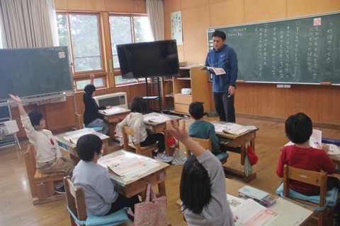 本日の授業の様子から・・・ 1年生は、国語「おとうとねずみチロ」です。本文からチロの心情を読み取りました。2年生は、国語でお気に入りの昔話を紹介しました。 3・4年生は、社会です。消防署見...