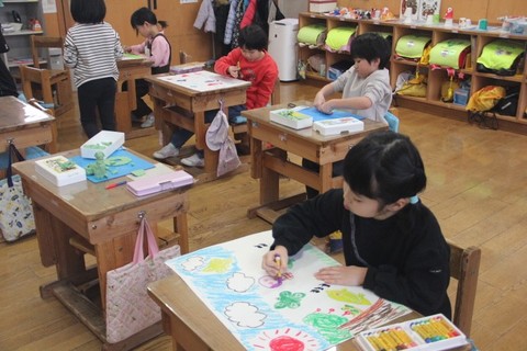 本日の授業の様子から・・・ 1・2年生は、図工「たのしくあわせて」です。紙版画で表現した作品に、クレヨンで彩色しながら仕上げました。 3・4年生は、国語「数え方を生み出そう」です。説明文を...