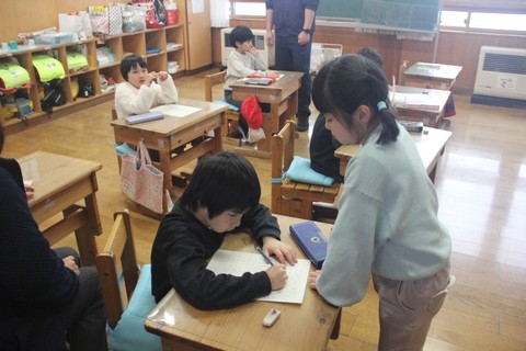 本日の授業の様子から・・・ 1・2年生は、生活科です。2月3日(火)の新1年生との交流会のリハーサルを行いました。「山っ子ランド」としてお店を出し、いろいろなゲームを楽しみます。今日は1・2...