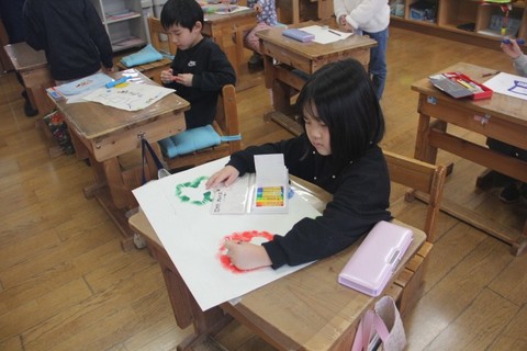 本日の授業の様子から・・・ 1・2年生は、図工「たのしくあわせて」です。自分の表現したい生き物を紙版画で表現し、クレヨンで彩色しながらカラフルに仕上げました。 3・4年生は、算数「小数のか...
