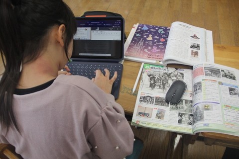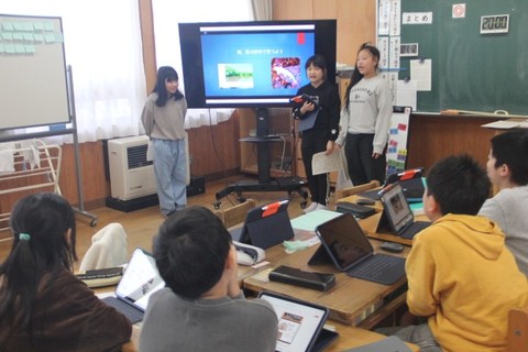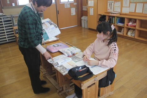 本日の授業の様子から・・・ 1・2年生は、生活科です。2月3日(火)の新1年生との交流会のリハーサルを行いました。お互いにアドバイスしながら、学校紹介の練習をしました。 3・4年生は、図工のスチレン版画です。「牛太郎と東山の魅力」をテーマに、細部まで表現しながら作品の構図を決めました。 5年生は、社会の歴史学習です。戦後の日本の社会情勢や生活の様子について調べ、そのことに対する感想・意見をまとめました。