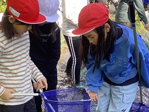 3,4年生は総合的な学習の時間に、能代川の観察にいきました。 トゲソの会の斎藤さんとCMKの市川さんも一緒に参加してくださいました。 前の日は雨が降っていたのですが、 川を見た子供たちは「見て!底が見える」ときれいな川の水に驚いていました。 それぞれが網を持ち、川に入って生き物探しをしました。 「冷た~い」「流れが速い!」「沢蟹見つけた!」と 元気な声が響き渡りました。 川の観察を通してきれいな川を守りたいという気持ちを高めています。