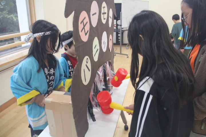 1時間目から4時間目まで、東小千谷小学校で開催された児童会行事「若草フェスティバル」に参加しました。 縦割り班ごとに出店し、様々なゲームにチャレンジしました。東山小は、「東山子ども縁日!」を出店しました。「モーモーパニック」「面綱輪投げ」「勢子長の合図で鼻をとれ」の3つを出店しました。東小千谷小の子どもたちと交流しながらゲームを楽しむことができました。エンディングでは、東山小のみんなでお礼を伝え、東小千谷小のみなさんへステッカーとリーフレットをプレゼントしました。