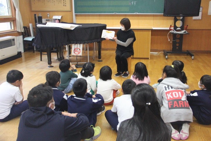 本日、朝会の時間に読み聞かせを行いました。 読書旬間ということで、学校職員による読み聞かせを行いました。子どもたちは絵本の世界に浸りながら考え、様々な感想をもちました。近くの子ども同士で感想を伝え合ったり、みんなの前で発表したりすることができました。読み聞かせを通して、読書への意欲を高めていました。