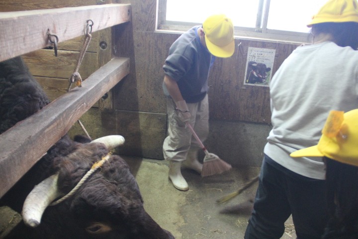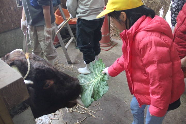 5時間目に牛太郎タイム最終回を行いました。 最終回は全校児童で小屋の掃除とえさやりを行いました。その後、代表児童から平澤さんと牛太郎への感謝の言葉を述べ、全校のみんなで「闘牛の歌」を歌いました。これから牛舎で冬を越す牛太郎の健康を祈り、最後に「よしたー!」のエールを送りました。子どもたちは来年の闘牛を楽しみにしています。