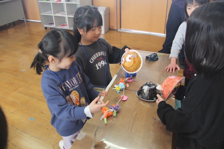 本日、5限に新1年生の入学説明会と見学交流会を実施しました。 入学説明会では、保護者を対象に入学前後に関わる説明をしました。見学交流会は、新1年生と現1・2年生が一緒に校舎見学をした後、教室で「ころりん」「うしうし車」「うしロケット」で遊びました。1・2年生は、この日まで準備やリハーサルを重ね、みんなで優しく新1年生を迎え入れました。