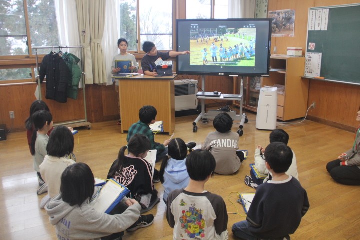2~4限に、東小千谷小4年生と東山小3~6年生の交流を行いました。 はじめに、「お題にあわせてならべ」ゲームをみんなで楽しみました。その後、東山小、東小千谷小の順で、「総合的な学習の時間」で学んだことについて発表し合いました。子どもたちはお互いの発表を聞き、感想を述べ、交流を深めました。短い時間でしたが、すぐに仲良くなり、別れを惜しんでいました。