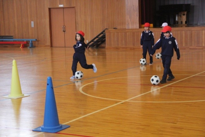 本日の授業の様子から・・・ 1・2年生は、体育「ボール遊び」です。サッカーボールを使って、的当てゲームとゴールゲームをみんなで楽しみました。 3~6年生は、体育「ティーボール」です。ボールに慣れるためのドリルゲームやキャッチボールなどをしました。子どもたちは、ボールを操作することに集中しながら、ゲームを楽しんでいました。