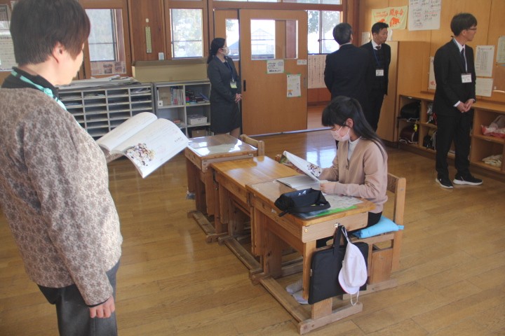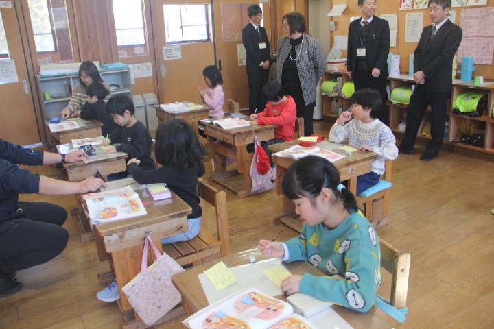 2時間目に、小千谷市小学校長会研修の一環で、市内の校長先生が東山小の授業を参観しました。 1・2年生は、道徳「ぼくにもあるかな」です。自分や友だちのよいところを見付け、カードに書いてお互いに交換し合いました。 3・4年生は、外国語活動です。一人一人が自作した「漢字の読み方クイズ」を出し合いました。英語で出題、解答をしながら楽しみました。 5年生は、国語「伝記を読んで感想文を書こう」です。手塚治虫の生き方について読み取りました。