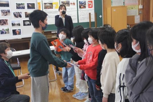 本日、5時間目に「6年生ありがとう集会」を実施しました。学習参観として実施し、多くの保護者からも参加いただきました。 それぞれの学級で準備・練習してきた出し物を披露しました。1・2年生の漫才とメッセージ、3・4・5年生のビデオメッセージと続き、6年生からも全校へ向けて感謝のメッセージがありました。最後に6年生へのプレゼント贈呈があり、あたたかい雰囲気に包まれた会となりました。