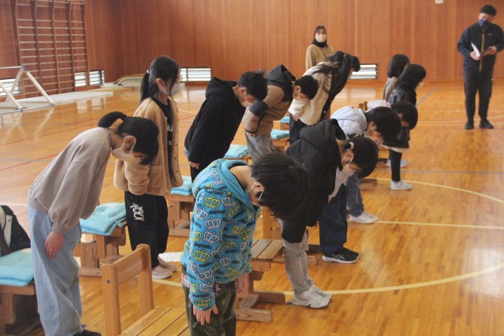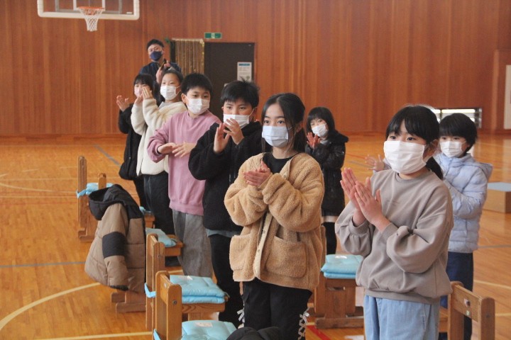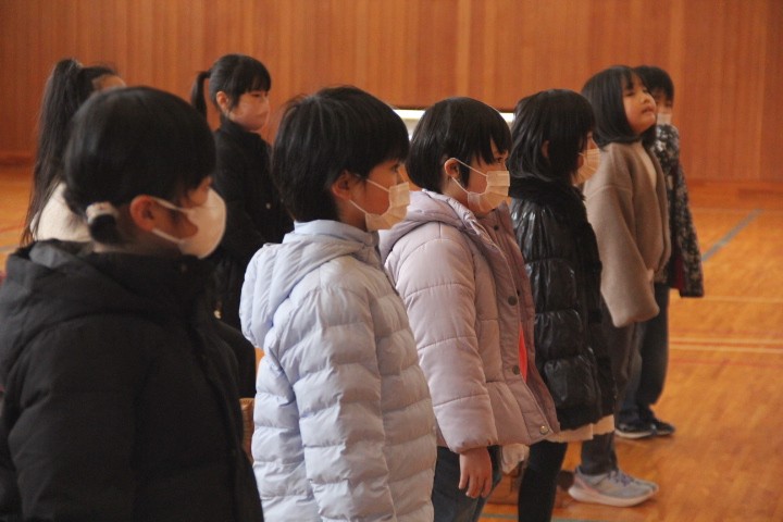 3時間目に、卒業式の全校練習を行いました。 卒業生入場から退場まで、卒業式の流れを確認しながら「別れの言葉」を中心に練習しました。卒業生が欠席のため不在でしたが、子どもたちは本番と同じ気持ちで練習に臨みました。寒い体育館で長時間の練習でしたが、どの子も立派な態度でした。
