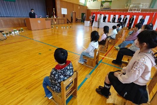 本日、2年生から6年生までの13人が元気よく登校して、東山小学校の令和8年度がスタートしました。 はじめに、転入職員3名を迎え、新任式を行いました。引き続き、第1学期の始業式を行いました。校長から子どもたちへ、幸せを感じながら毎日全力で頑張ることの大切さについて話しました。続いて担任発表と職員紹介!子どもたちの表情から、やる気が大いに伝わってきました。
