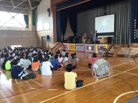 7月4日、小中交流事業として、グローバルに活躍する方の生き方やアフリカの文化を学ぶイベントを中学校を会場に実施しました。アフリカの音楽を楽しむパートでは小学生も中学生も音楽にのって踊ったり走ったり。有意義かつ楽しい学習となりました。