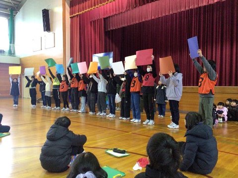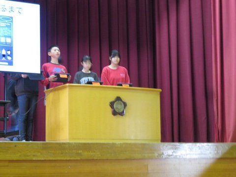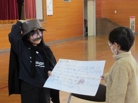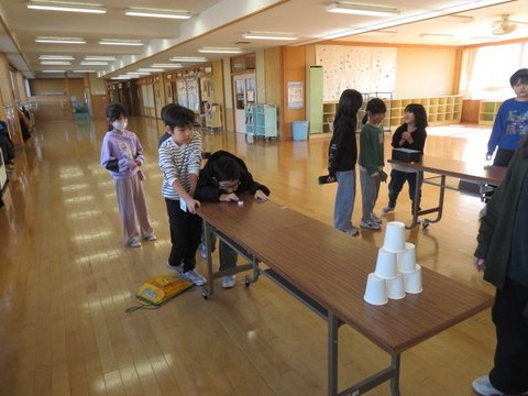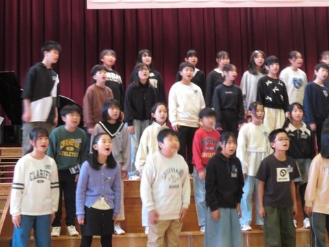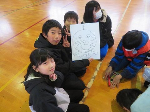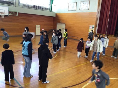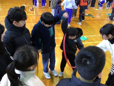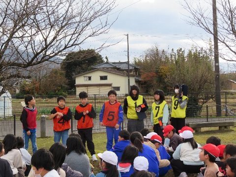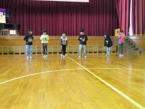 12月5日、いじめ見逃しゼロスクール終会を行いました。各学年からの「いじめみのがしま宣言」を発表し合った後、フラフープくぐり、お絵かきリレーで更に仲のよさを深めました。