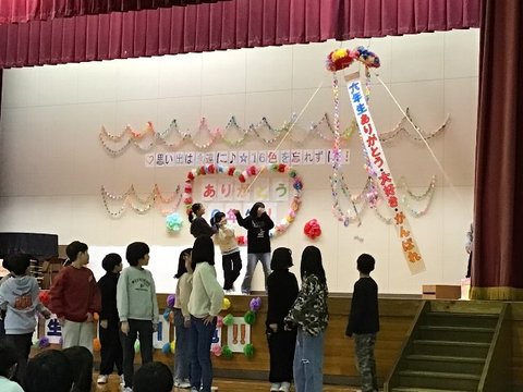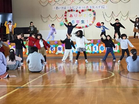 2月24日、六年生を送る会を行いました。オープニングは1・2年生によるダンス。メッセージカードの贈呈に、くす玉割り、委員会の引継式も行いました。1~5年生の「大好き!」、6年生の「大好き!」があ...