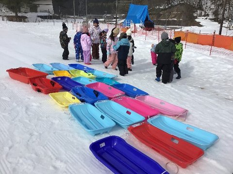 2月27日、低学年が生活科「冬の遊び」の学習で冬鳥声スキーガーデンに出かけました。広いソリ用ゲレンデに目がキラキラ!楽しんできました。