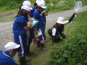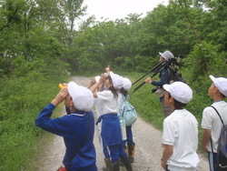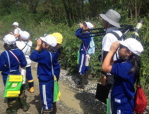 理科教育センターから3名の講師の先生をお招きして,調査を進めました。野鳥,植物,その他の生き物の3グループに分かれ,講師の先生に生き物のすみかや種類,特徴などを教えていただきました。