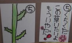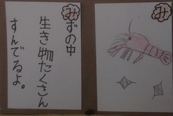 総合の学習で,五辺の水辺に探検に行きました。そこで見付けたことや感じたことをカルタにしています。作成を始め,少しずつカルタが増えてきました。これからも続け,マイカルタを完成させます。