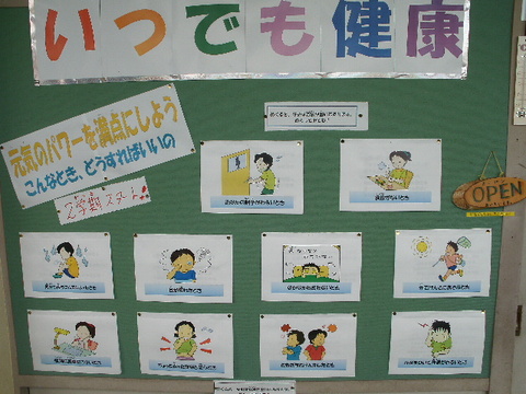 長い夏休みが終わり、2学期がスタートしました。体験遠足・学習発表会など楽しい行事がたくさんあります。 2学期も元気に頑張ってほしいと願っています。 保健室前に「こんな時どうすればいいの?」を...