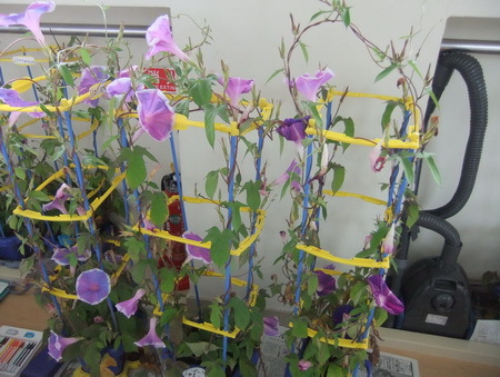 アサガオの種をまいてから2ヶ月、子どもたちのアサガオは日に日に数を増やし、色鮮やかな花を咲かせています。 入学当初と比べ、多くの事を覚え、様々なことができるようになった子どもたち。子...