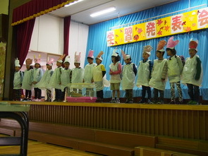 10月19日(日)、学習発表会を行いました。 1年生は、「はじめの言葉」「1年生の発表」「全校合唱」の3つのプログラムに参加しました。 「はじめの言葉」では、全員が大きな声で自分のセリフを発...