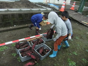 10月21日(火)に、春から育ててきたサツマイモの収穫をしました。 天候が危ぶまれましたが、子どもたちが一生懸命協力して活動したおかげで、雨にうたれることなく、大量のサツマイモを掘ることができ...