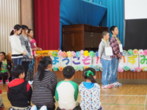1年生を迎える会では、はじめの言葉を担当し、1年生に「和泉小学校は楽しいところだよ」ということを伝えるために歌やダンス、劇でメッセージを伝えました。6年生らしく立派に発表することができました。