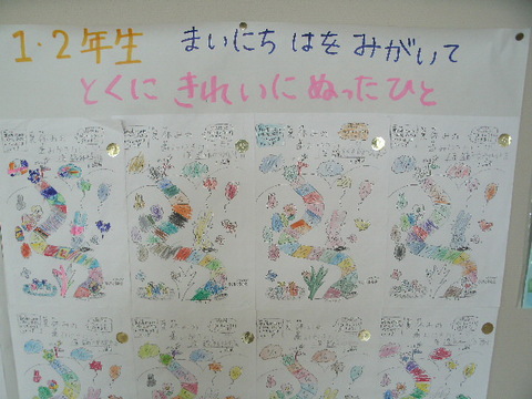 夏休み歯みがきカレンダー、みんながんばりました。仕上がったカレンダーを委員会の子どもたちが選んで、児童玄関に掲示しました。食べたらみがくを習慣にして、これからも今の健康な歯と歯肉を保ってほしいと...