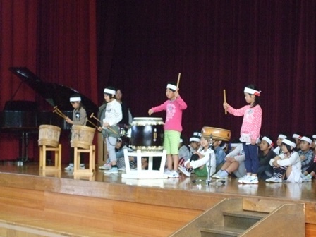 2年生は、「かさじぞう」の絵画、「すてきなぼうし」の工作を展示しました。一人一人の思いを作品に表現しました。 学習発表会では、音楽の授業で学習した、自作の太鼓のリズムを演奏しました。保護者や地域...