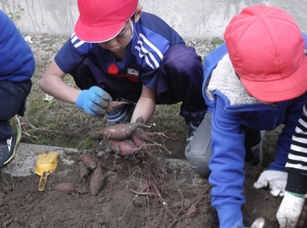 先日収穫したさつまいもで、スイートポテトを作りました。ゆでたさつまいも150g、砂糖3g、バター5g、コーヒー用液状ミルク4mlをビニール袋に入れて、よく混ぜます。アルミホイルに入れて形を整える...