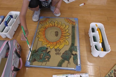 5月の末に植えたヒマワリとホウセンカが夏の太陽をいっぱい浴びて、大きくなりました。 2学期の理科の学習で、成長の様子を観察します。一つのヒマワリからいくつ種が取れるかな。