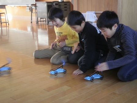 理科でゴムのはたらきを学習しました。長くのばしたゴムが元に戻る力を利用して、ゴムで動く車を作りました。ゴムを長くのばしたり、ゴムの本数を増やしたりすると、車を遠くまで走らせることができることが実...