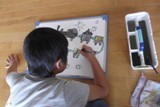 文化祭に出品する絵画を制作しています。宮澤賢治の「銀河鉄道の夜」の一場面を絵に表しています。絵本や写真、昨年までの4年生の作品を参考にして、汽車の形や宇宙の様子を丁寧に表現しています。