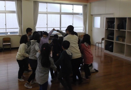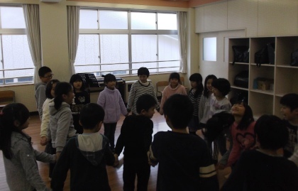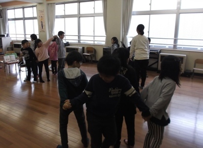 音楽の授業で「なべなべそこぬけ」という歌遊びをしています。2人組で音楽に合わせて背中あわせになったり向かい合ったりします。2人組ができると、次は4人組、最後は全員で!子どもたちは楽しそうに取り組...
