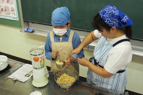 きらきらの畑で大豆を収穫しました。大豆と言えば、豆腐。ということで、豆腐作りに挑戦です。 まず、大豆をミキサーにかけ、布袋でこします。それを2回繰り返し、できた豆乳を弱火で煮ます。そして、冷...