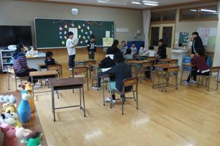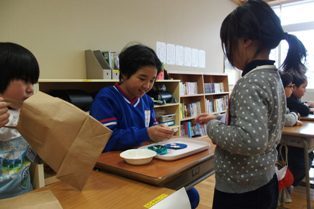 「おにはーそとー。」「ふくはーうちー。」 子どもたちの声が教室に響きます。今日は2月3日、節分です。「おこりおに」「なきむしおに」「ゲームおに」・・・・。いろいろな鬼を追い出しました。みんな...