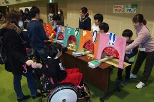 今年のクリスマス会は、出しものではなく各学校でお店を出しました。きらきらは「きらきらわにアタック」というお店を出しました。わにが出たり入ったりするのをハンマーでたたきます。お客さんが大勢来て、...