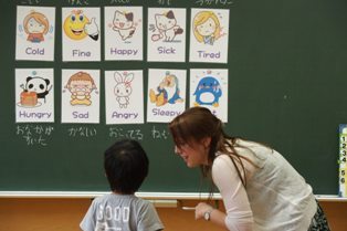 ALTのカーリー先生と英語の学習をしました。今日は、「ファイン(元気)」や「アングリー(怒る)」、「スリーピー(眠い)」など、自分の気持ちや状態を表す言葉を教えてもらいました。「ハウ アー ユ...