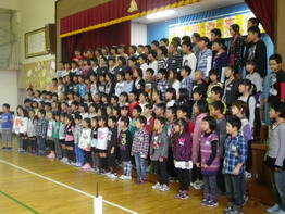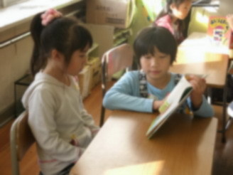 平成25年の入学生19名が、来校します。内科検診などの各種検査をし、入学に備えます。 そのため、1年生から4年生の下校は、13:00です。5・6年生の下校は、14:20です。少し早い下校になりますが、ご協力をお願いします。 写真は、今朝、校内読書旬間にあわせて行われたペア読書の様子です。上学年が下学年に読み聞かせをして、互いのかかわりを深めました。