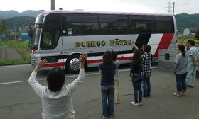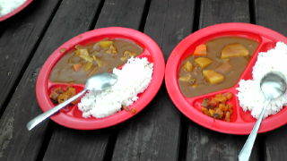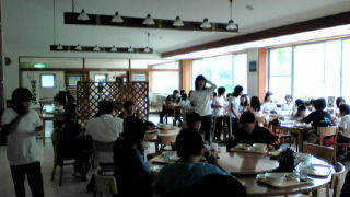 お昼をたべました。カレーライス、唐揚げ丼、そばとラーメンを、みんな、しこたま食べました。元気です! これから、小千谷に向けて出発します。予定より、10分ほど早く出発となります。
