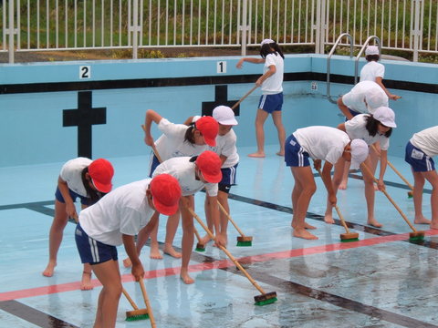 プール清掃を行いました