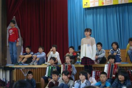 10月21日(日)に6年生にとっては、小学校生活最後の学習発表会がありました。親善音楽会で発表した合奏「島唄」、合唱「世界が一つになるまで」を発表しました。 合奏「島唄」では、親善音楽会での反省を生かし、リズムが速くならないように、ゆったりとスタートできました。最後まで、みんなが心を一つにして最後まで演奏することができ、今までで最高の合奏でした。 合唱「世界が一つになるまで」は、和泉小の高学年のきれいな歌声が体育館中に響き渡りました。ソプラノ、アルトそれぞれのパートが重なり合いきれいなハーモニーになりました。 6年生は、全体にかかわる仕事もたくさんありました。全体の放送、全校合唱の準備、そして伴奏。学習発表会をしめる終わりの言葉。全員がそれぞれの仕事をしっかりと取り組んだおかげで、とてもよい学習発表会になりました。 みんなが主役!の学習発表会になりました。