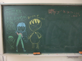 3月25日(水)離任式を行いました。 離任式では、1年生から4名の代表児童が転出職員に手紙や花束を渡しました。どの子も、最後に「ありがとうございました。」「新しい学校でもがんばってください。」などと、一言メッセージを伝えていました。 離任式後、教室の黒板には「先生、ありがとう。」「さようなら。」などと、子どもたちが自主的に書いたメッセージが残されていました。 本日で平成26年度が終わります。 明日より、子どもたちはいよいよ2年生です。 子どもたちが今よりさらに大きく成長することを願っています。