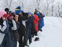 冬の五辺沼探検に行ってきました。 今週は、寒の戻りで、雪が降り続き、一面真っ白! 講師の先生と一緒に、雪を踏みしめながらの探検でした。 空を飛ぶカワウ、コハクチョウ、トンビや、五辺沼でえさを探すカモを見ることができ、子どもたちは大喜びでした。 「また、五辺沼に来たいなぁ。」 今年の探検は、これで終わり。 五辺沼が大好きな子どもたちです。