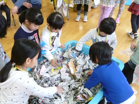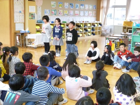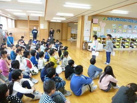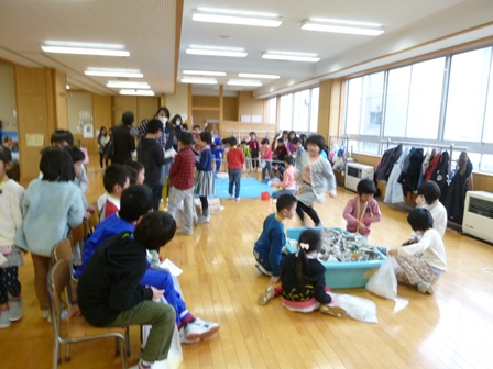 保育園の年長さんたちが、2年生の「あそびランド」に遊びにきてくれました。準備のときから当日が待ち遠しく、お兄さんお姉さんぶりを発揮して、今日は、笑顔でお店を開くことができました。「入学式にまた会えるといいな。」